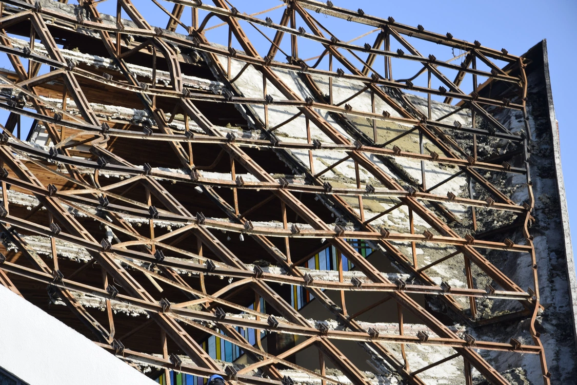 Prace są skomplikowane i wymagają szczególnej ostrożności. Robotnicy działają głównie z zewnątrz budynku, korzystając ze specjalistycznych podnośników, ponieważ wejście pod uszkodzony strop byłoby zbyt niebezpieczne.