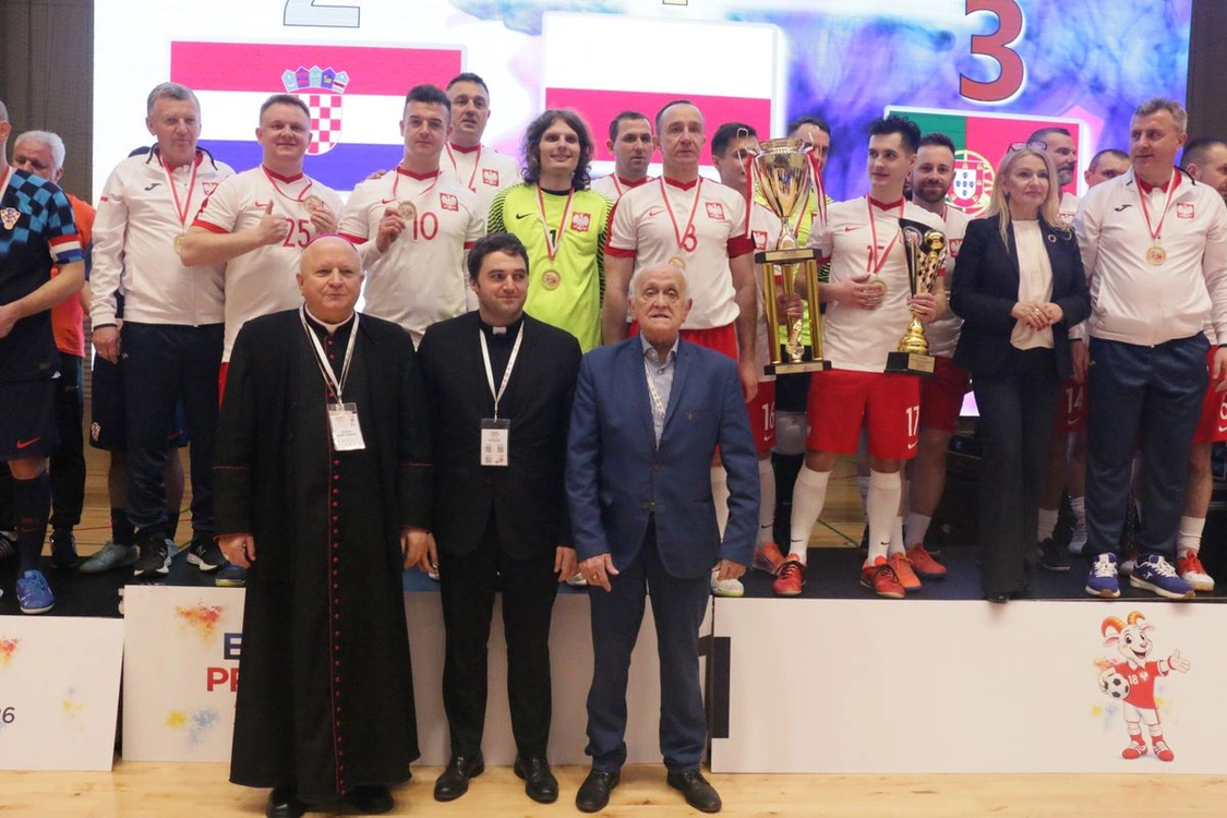 Kibice zgromadzeni w hali Uniwersytetu Medycznego dopingowali polską reprezentację księży.